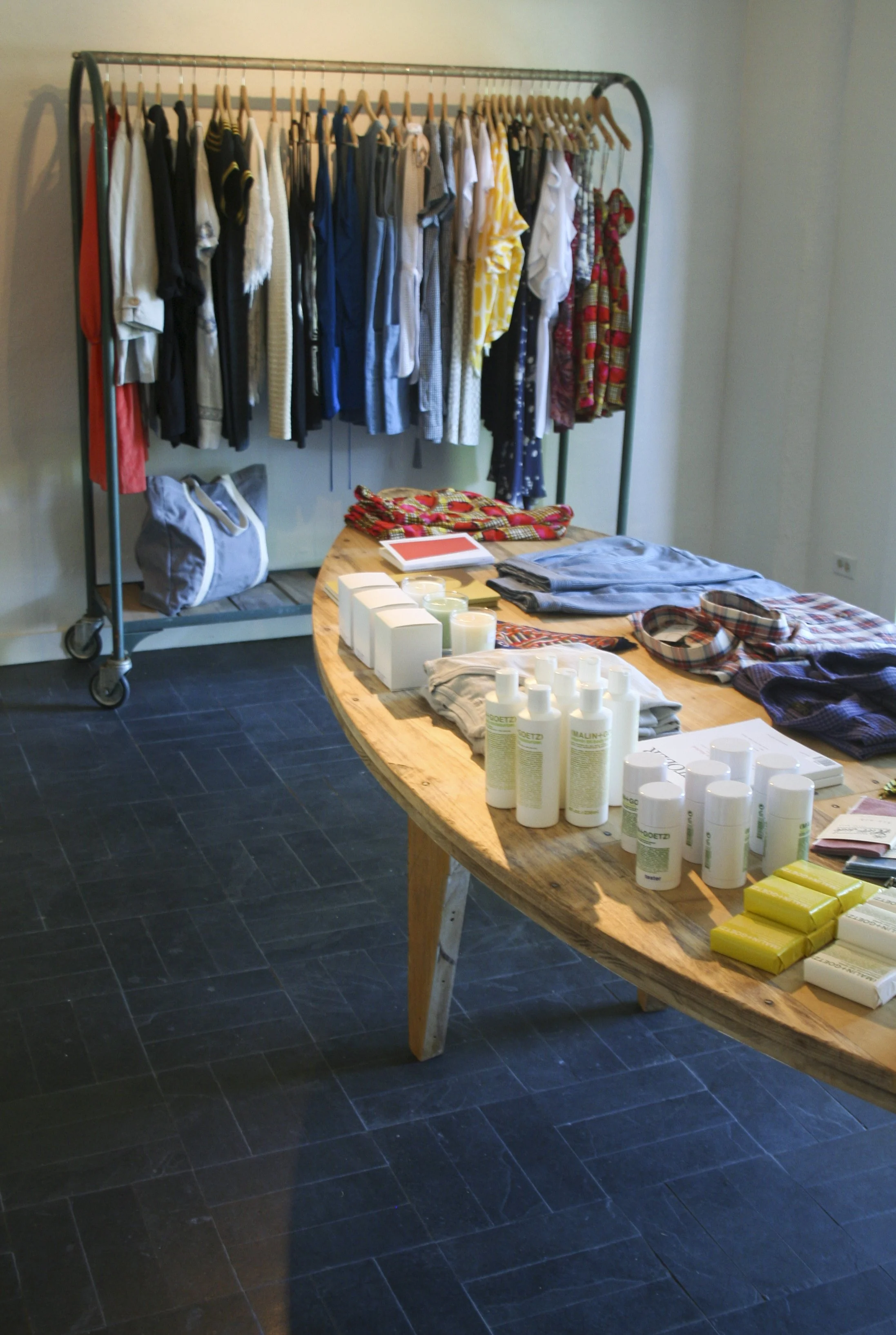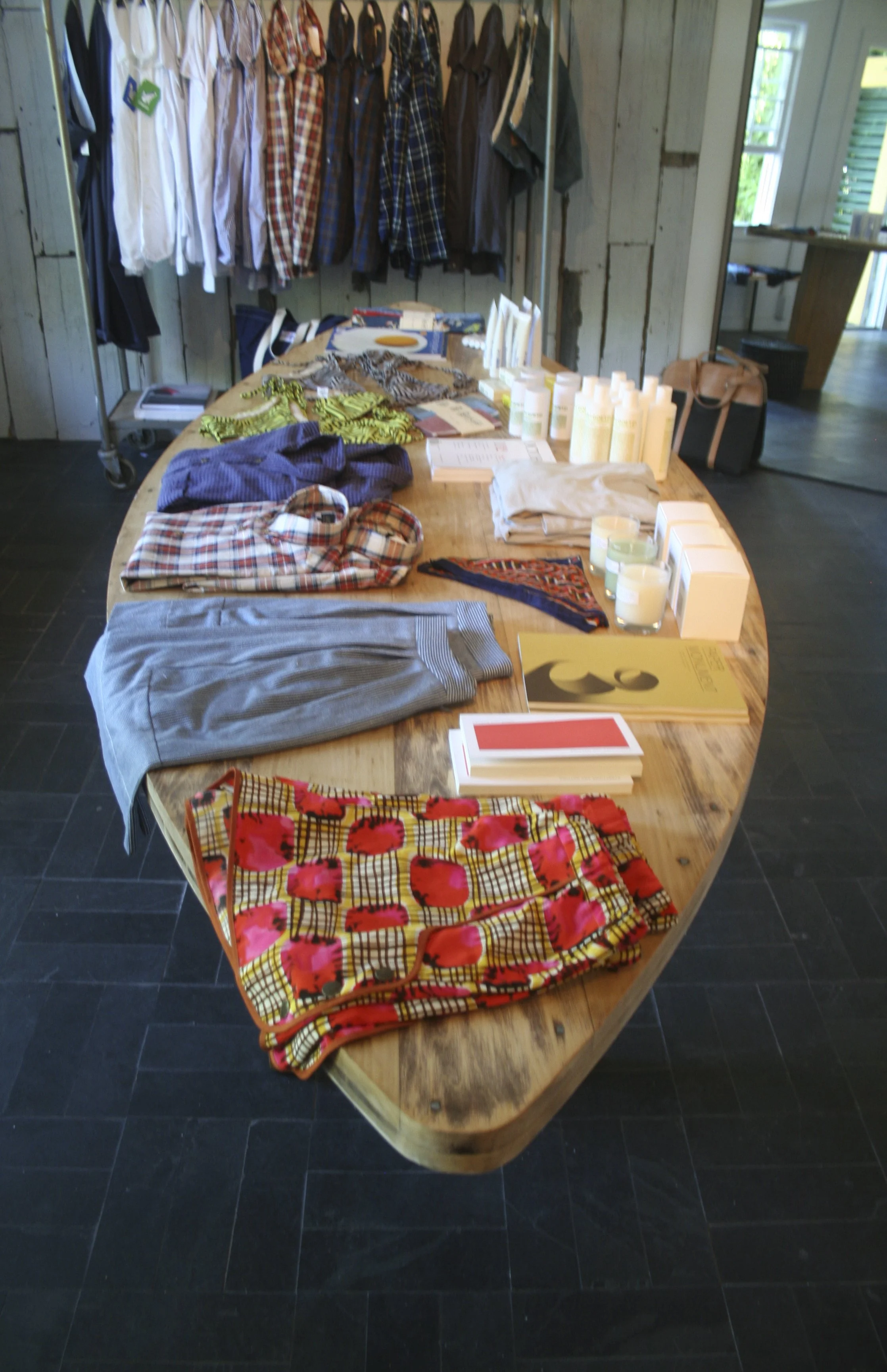 Retail design and construction for Edition 003, a pop-up clothing store in Montauk, NY, located at Solé East. The shopping experience was based on my own memory of summers at the shore which were implemented through the use of textural walls, and a variety of floor coverings, the idea being that someone would walk barefoot from the pool and directly into the shop. While the items being sold were premium, the environment was not overpowering, it was designed to have a relaxed vibe.